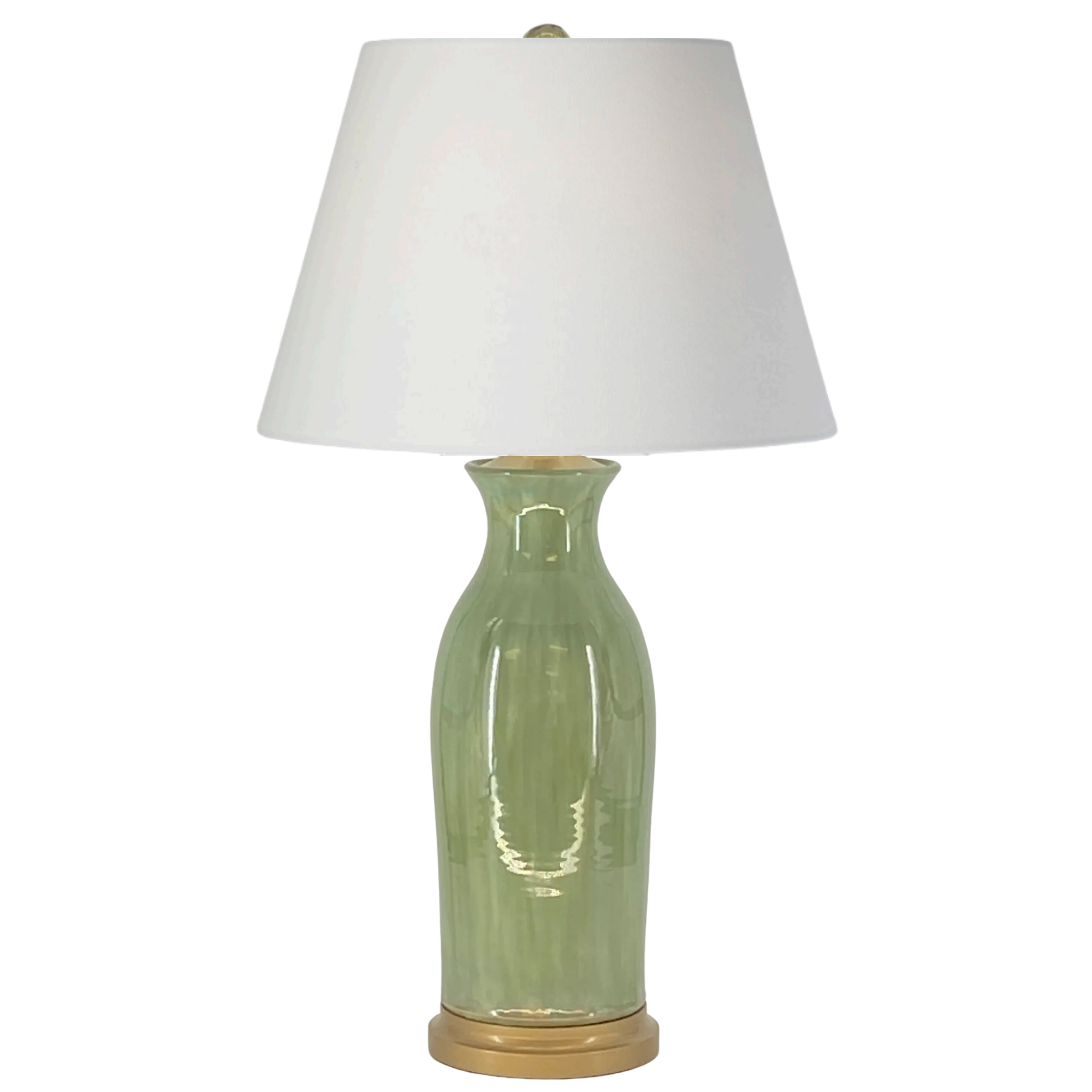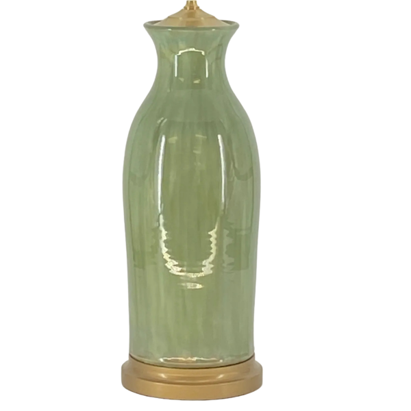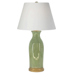 Handmade and hand-glazed, the Veranda table lamp by Charlie West features a classic silhouette finished in a softly layered Cypress glaze. Each lamp is uniquely finished, showcasing the subtle variations and depth of true studio pottery. Set on a gold-painted wooden base, it brings an elegant, collected touch to any space.