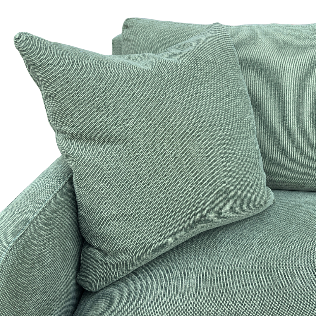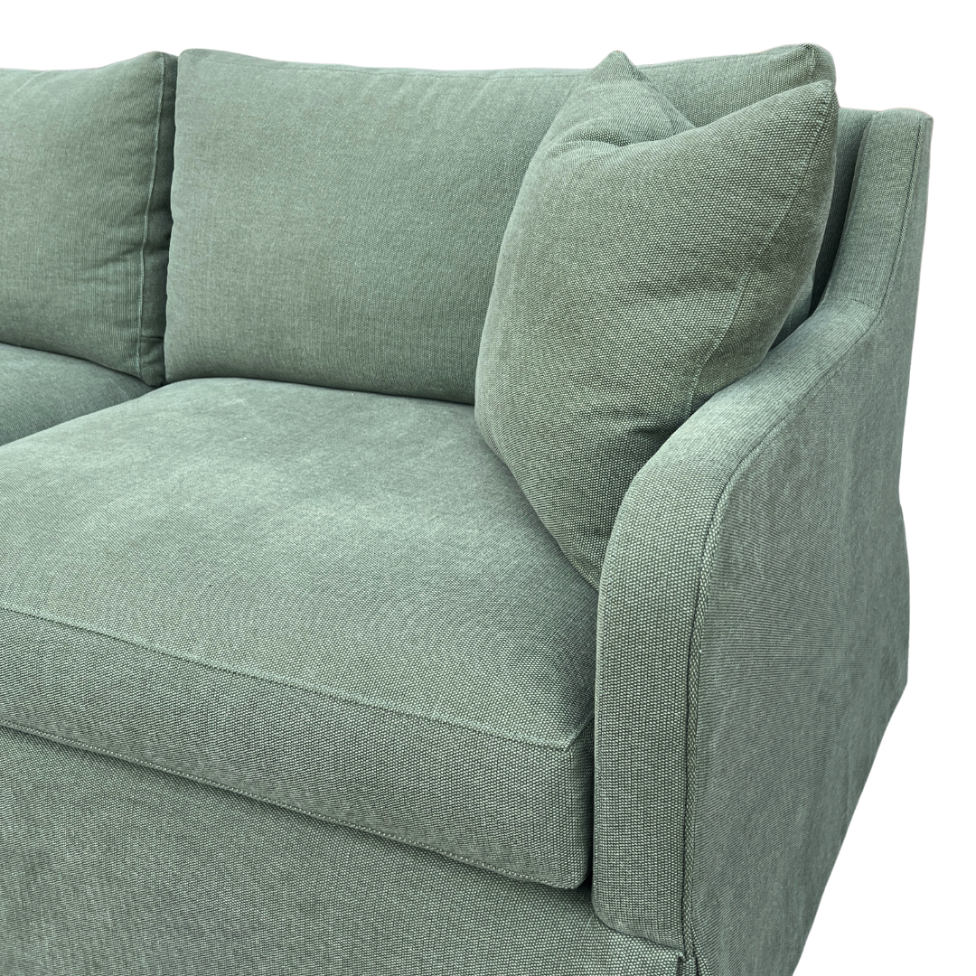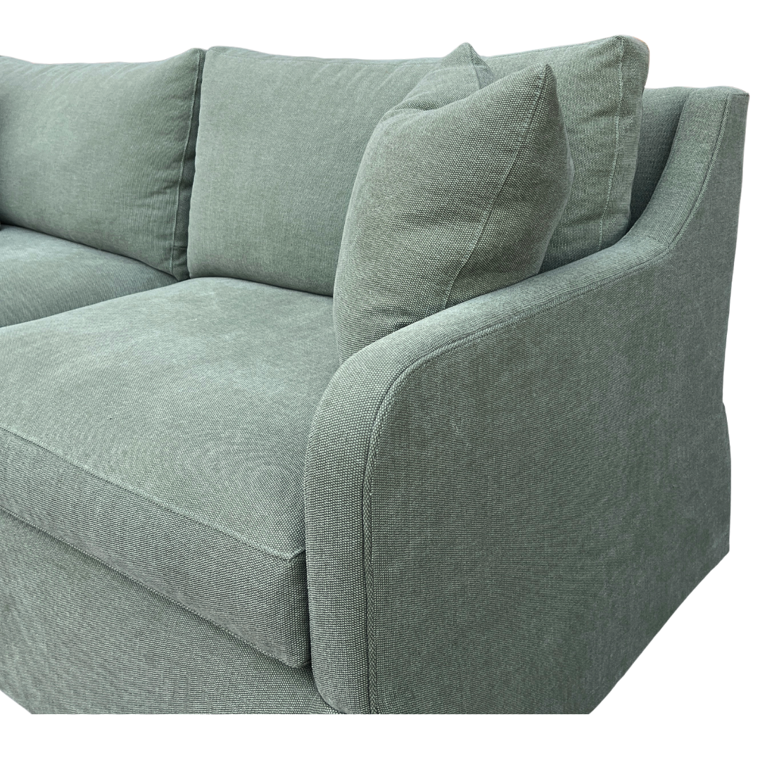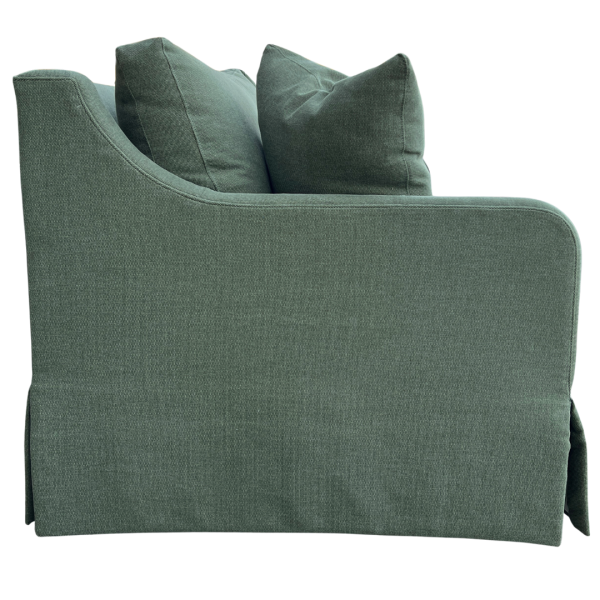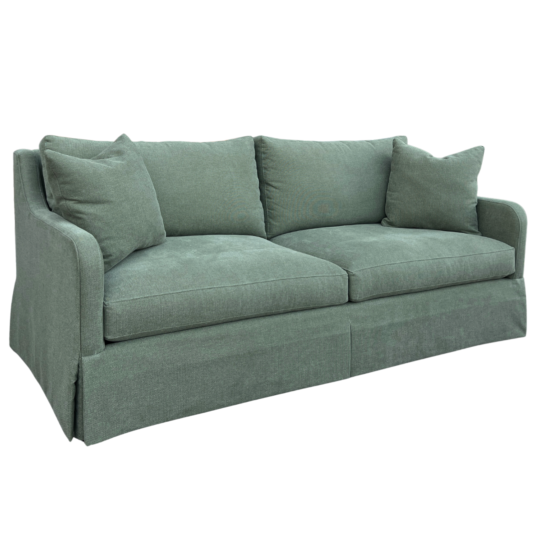 A timeless silhouette with refined comfort. The Julian features gently sloped arms and a graceful waterfall skirt, making it as elegant as it is inviting. Two generous seat cushions and plush back pillows provide deep comfort, while the tailored design makes this piece an easy fit in both traditional and updated interiors. Includes two standard 20″ throw pillows.
