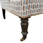 Turned wood legs and front casters lend a traditional touch and make it easy to move wherever it’s needed. Perfect for a sitting room, bedroom, or tucked into a reading nook, this chair brings both comfort and character to any space.