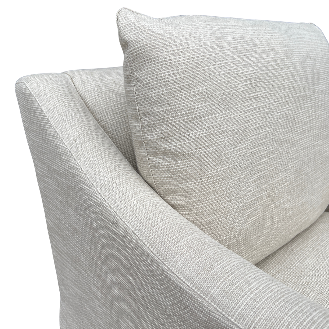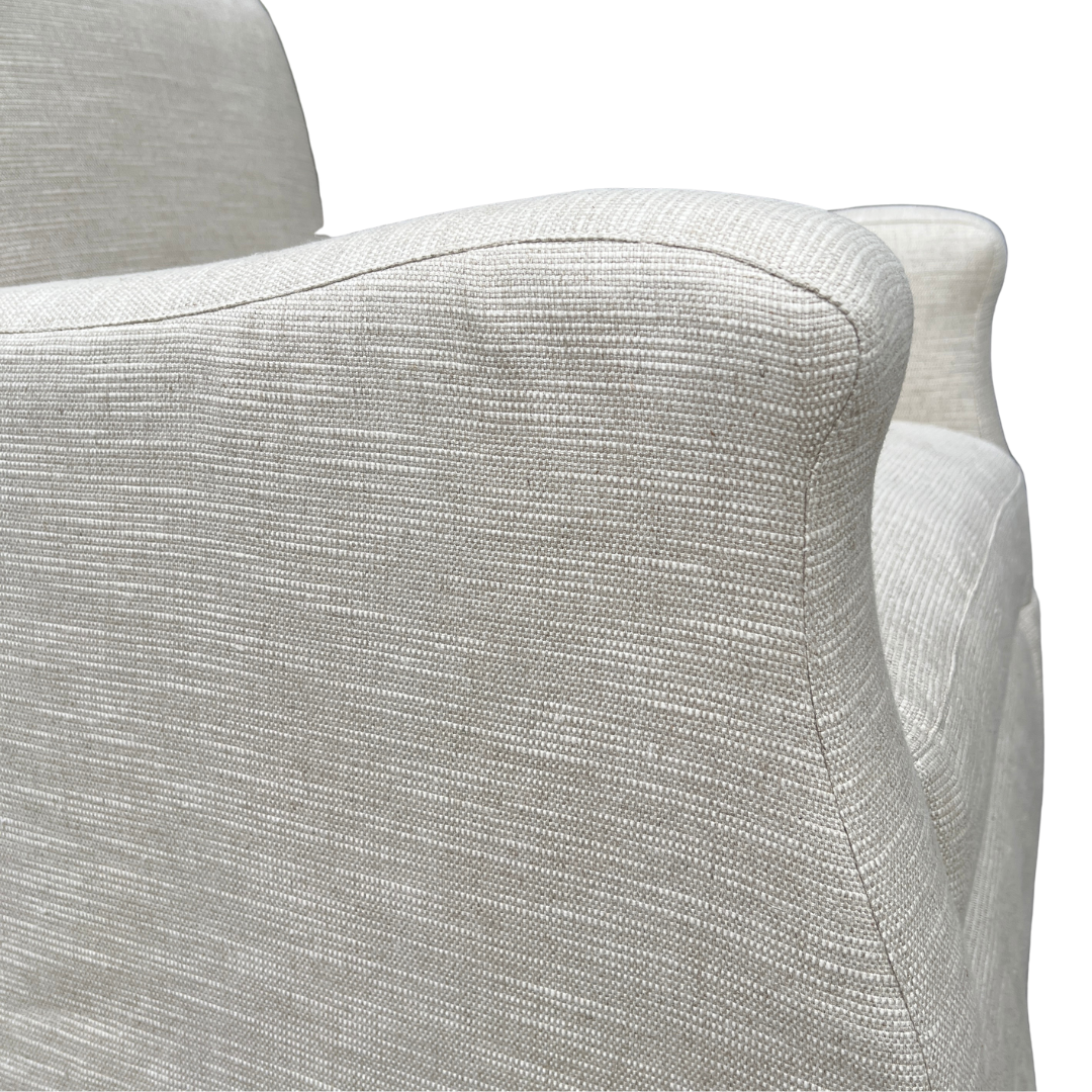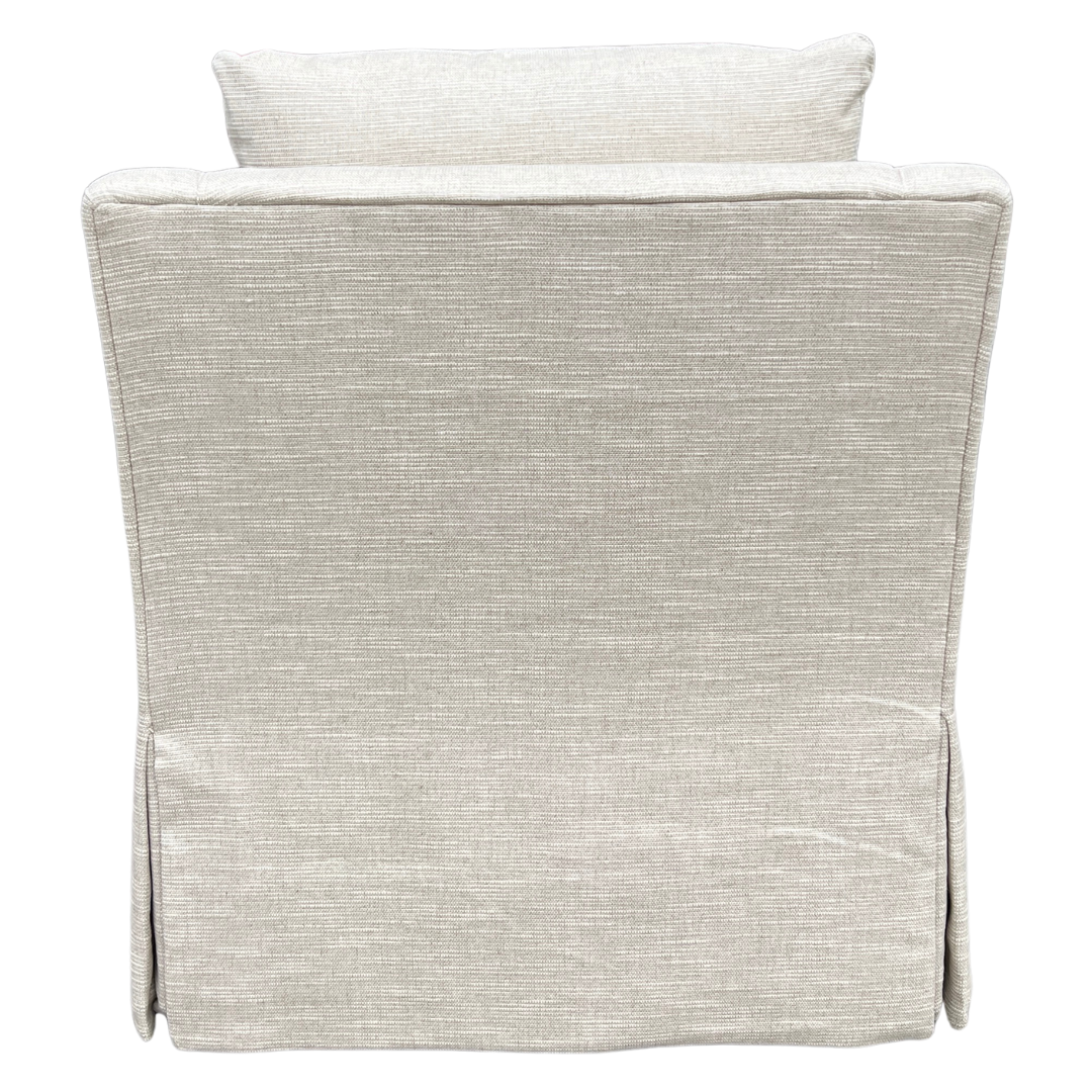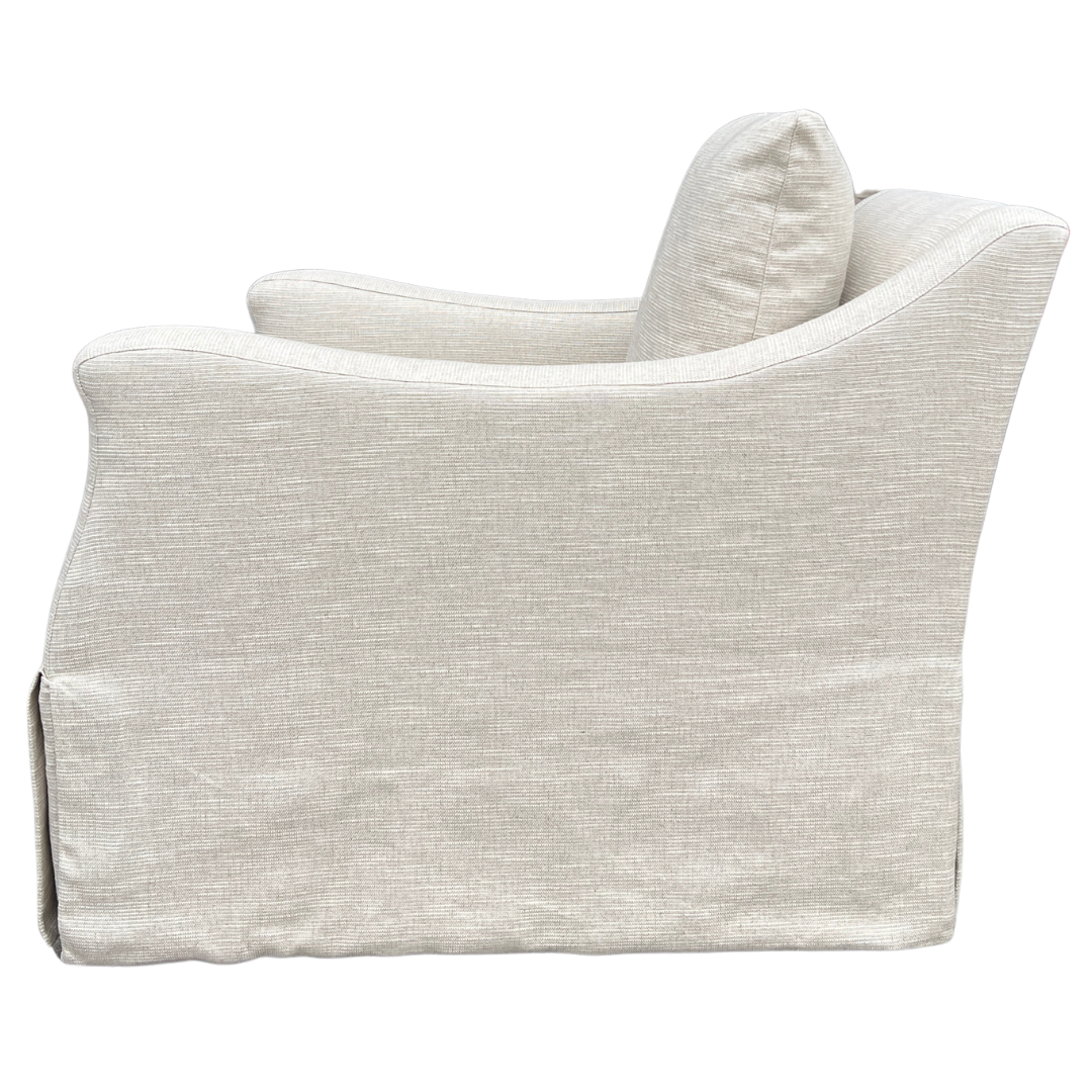The gently curved arms, plush loose back cushion, and dressmaker skirt make this tailored swivel chair wonderfully stylish from every angle. Perfect for living rooms, bedrooms or reading nooks, this classic style from Lee Industries delivers comfort, versatility and timeless style in one effortless piece. Upholstered in a soft, tonal stripe.