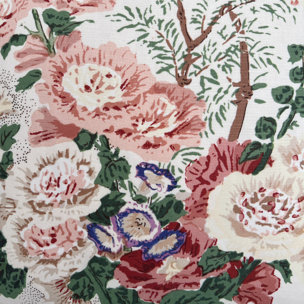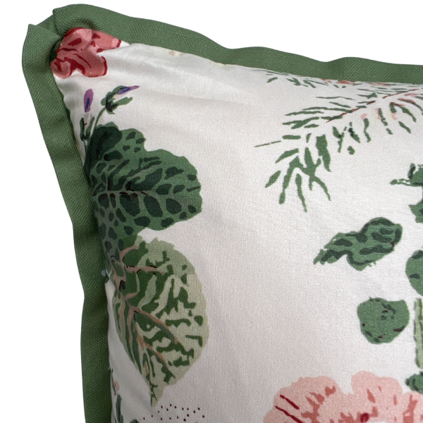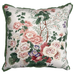 The McKenzie Pillow features a classic floral print in soft shades of blush, cream, and green with touches of purple and red. Finished with a coordinating green linen back and butterfly flange, it brings an elegant, collected look to any space. Beautiful on its own or layered with solids and textures. Feather down pillow insert included.