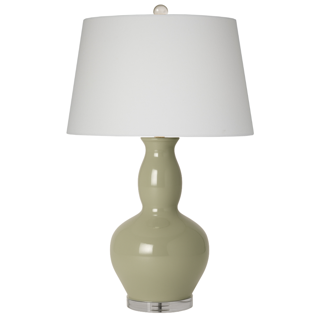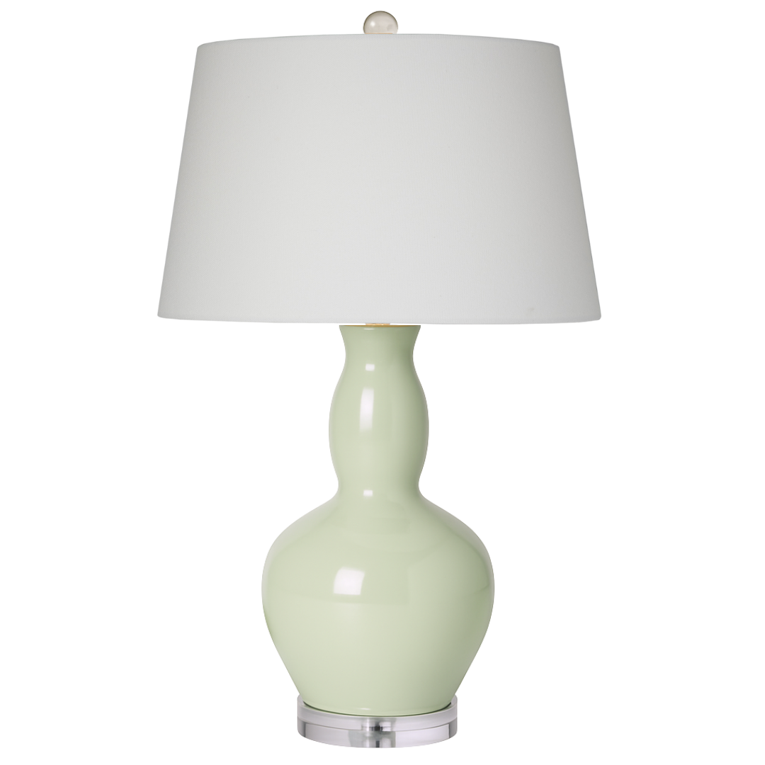 Crafted from ceramic and finished with a soft green glaze, the Noelle Table Lamp is a charming must-have. Whether you choose to use it in a traditional living room or a modern bedroom, Noelle’s glowing porcelain sheen and delicate shape make it the stunning centerpiece of any room. Rests on a clear acrylic base and topped with a matching acrylic finial.